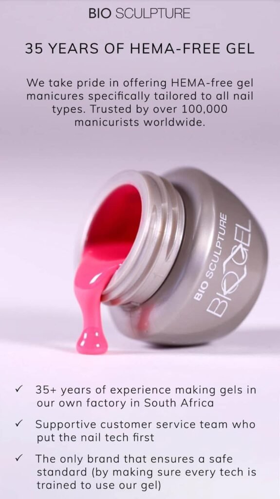 I use Bio Sculpture, Dali Artistic, Elim and Footlogix products. These brands support long term nail health and deliver excellent results. You can learn more about Footlogix by clicking here.